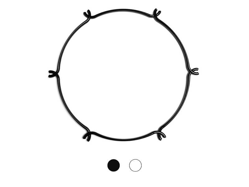 „A Cage kerek vagy szögletes gyűrűkből áll, mindegyik két különböző méretben érhető el, fehér vagy fekete újrahasznosított polimerből, illetve átlátszó polikarbonátból készült kivitelben. Ezeket a kívánt textilkábelekkel és Izzókkal kombinálva valódi függő szobrokat hozhatsz létre.”