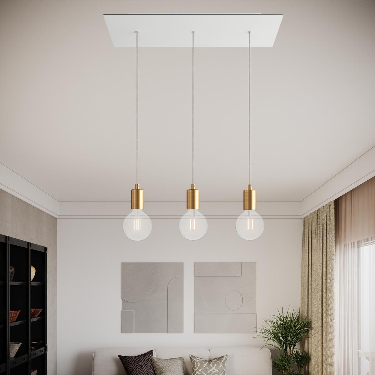 Rosace : 1X [KROVBORE3F102] Rosace XXL Rose-One rectangulaire à 3 trous alignés et 6 trous latéraux, dimension 675 x 225 mm - Decoration: Matt White Dibond, Ceiling Rose Colour: Blanc