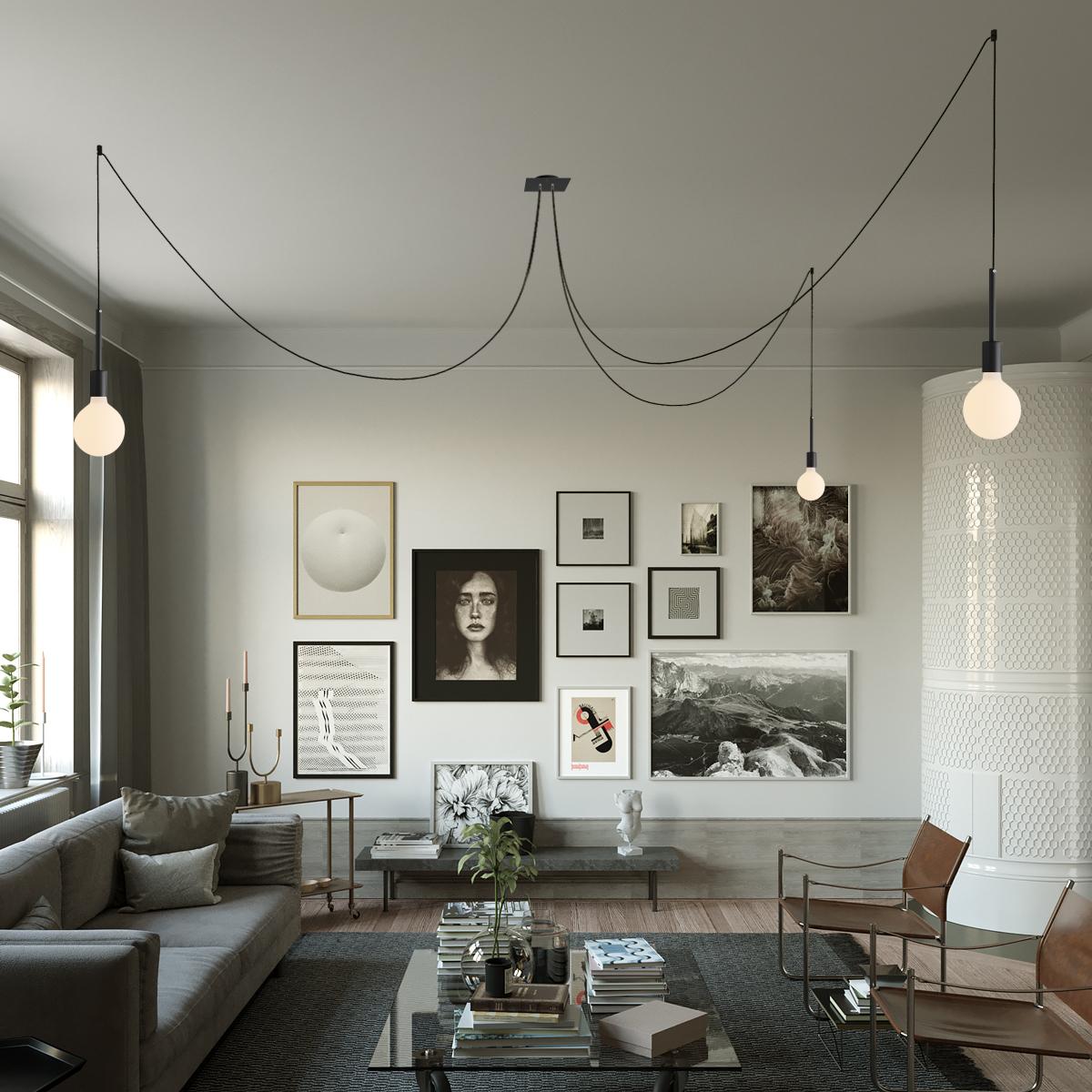 Portalampada: 2° Caduta : 1X [KBM4011VNTERM5] Kit portalampada E27 cilindrico in metallo con serracavo da 15 cm - Finitura: Nero